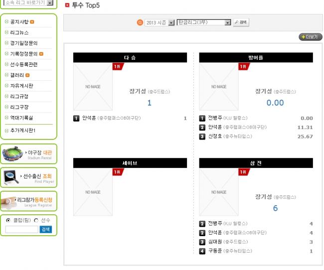 투수 관련 순위입니다. 전병주 선수의 독무대 입니다.ㅋㅋㅋ