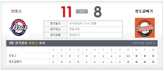 | 5월 26일 MS리그 10차전 YD SEAGULLS vs 브로스 후기 | 13-05-28 10:49 | ||